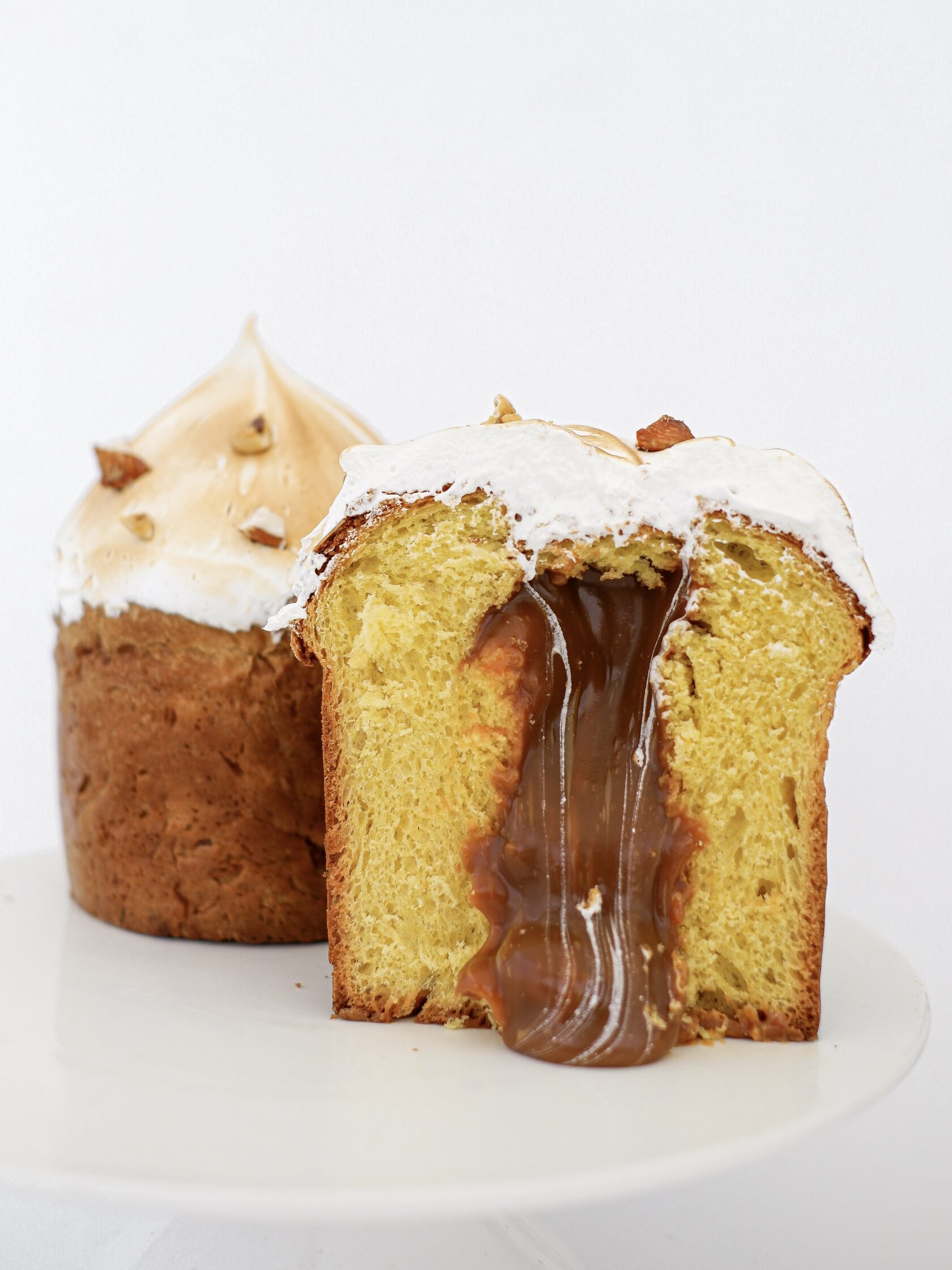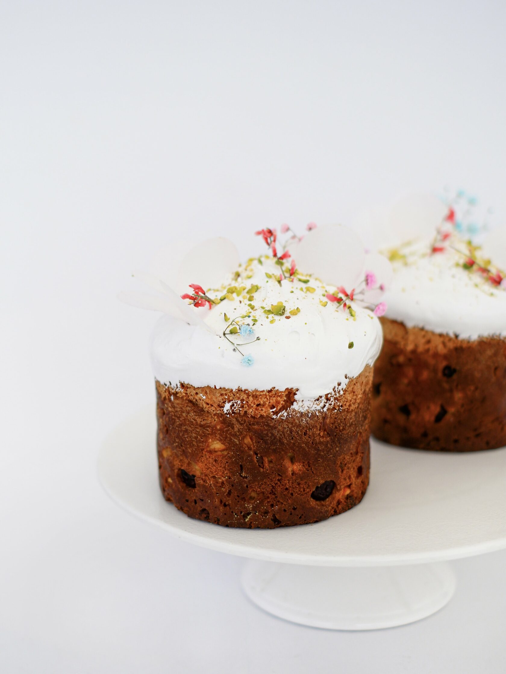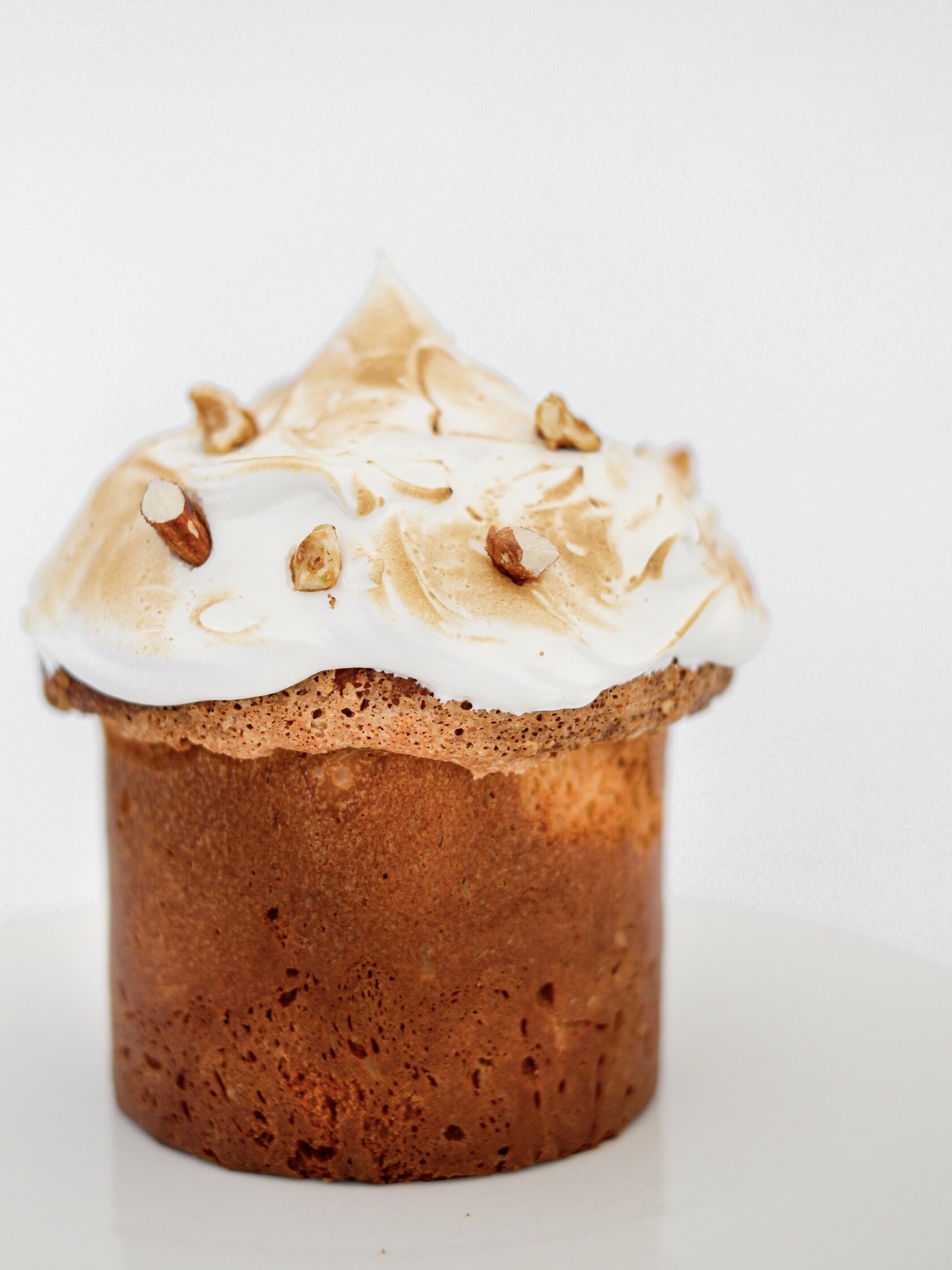 Классическая pasochka с вяленной клюквой, натуральными цукатами из апельсинов и лимонов с семенами бурбонской ванили. С шапочкой из запечённого миндального макаронада и белкового крема.
